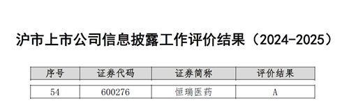 与此同时,在上海交易所公布的2024-2025年度沪市上市公司信息披露工作评价中,永利皇宫官网医药再次荣获最高评级——A级。